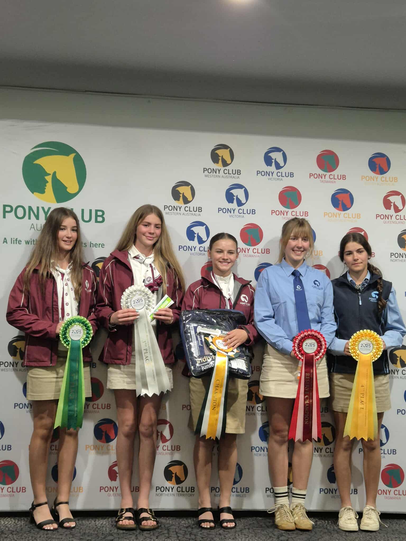 Lilly Morrissey, Erin O’Neill and Zoe de Vivo taking out the Junior Female Team title at the Ranvet 2025 PCA National Championships.